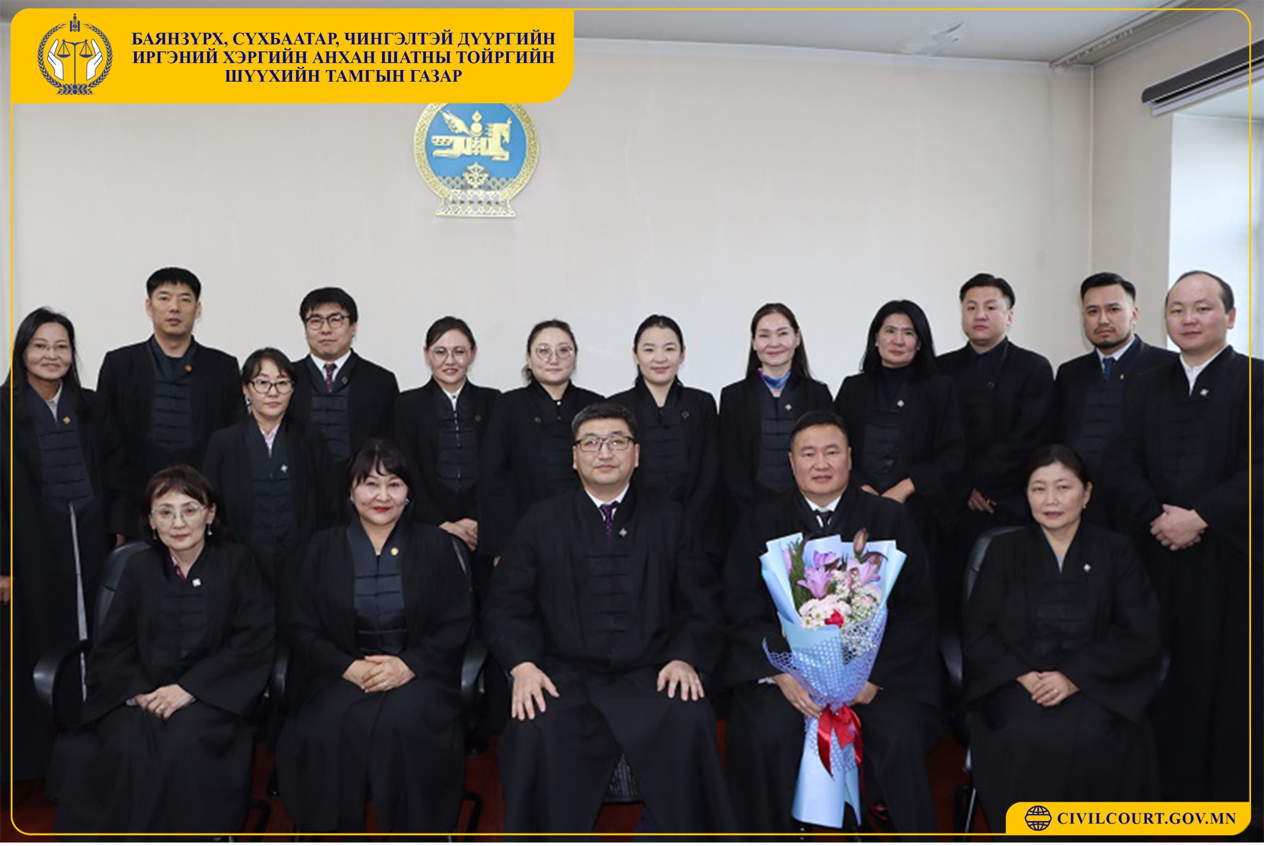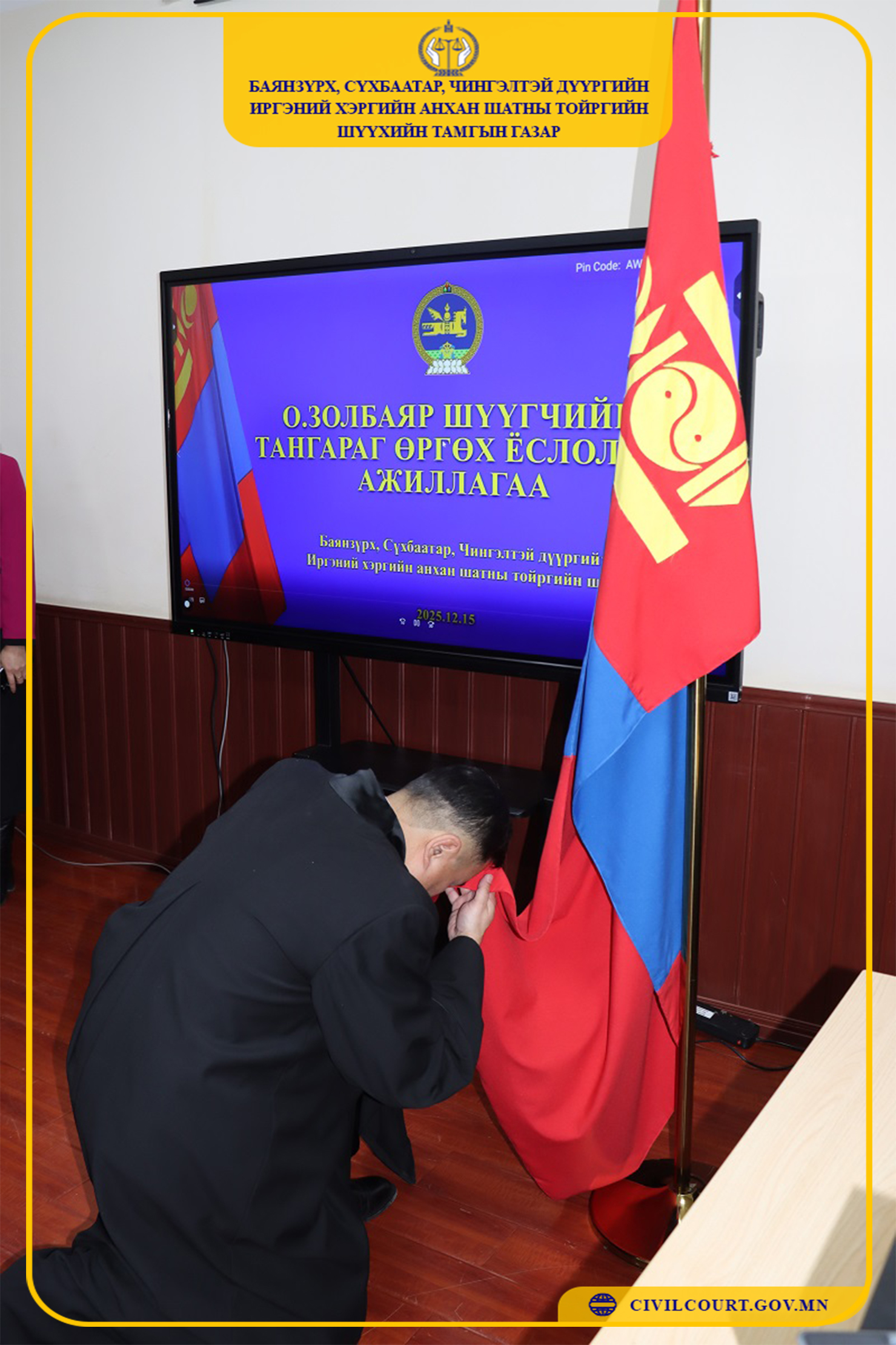 Монгол Улсын Ерөнхийлөгчийн 2025 оны 12 дугаар сарын 10-ны өдрийн 182 дугаар зарлигаар Баянзүрх, Сүхбаатар, Чингэлтэй дүүргийн Иргэний хэргийн анхан шатны тойргийн шүүхийн шүүгчийн албан тушаалд Отгонбаярын Золбаярыг томилж, шүүгчийн тангараг өргөх ёслолын ажиллагааг 2025 оны 12 дугаар сарын 15-ны өдөр тус шүүхийн байранд зохион байгууллаа. Шүүгчийн тангараг өргөх ёслолын ажиллагааг тамгын газрын дарга Л.Наянтай удирдаж, Монгол Улсын Ерөнхийлөгчийн зарлигийг уншиж сонордуулан шүүгч тангараг өргөснөөр хуульд заасан шүүгчийн бүрэн эрх нь эхэлж байна.