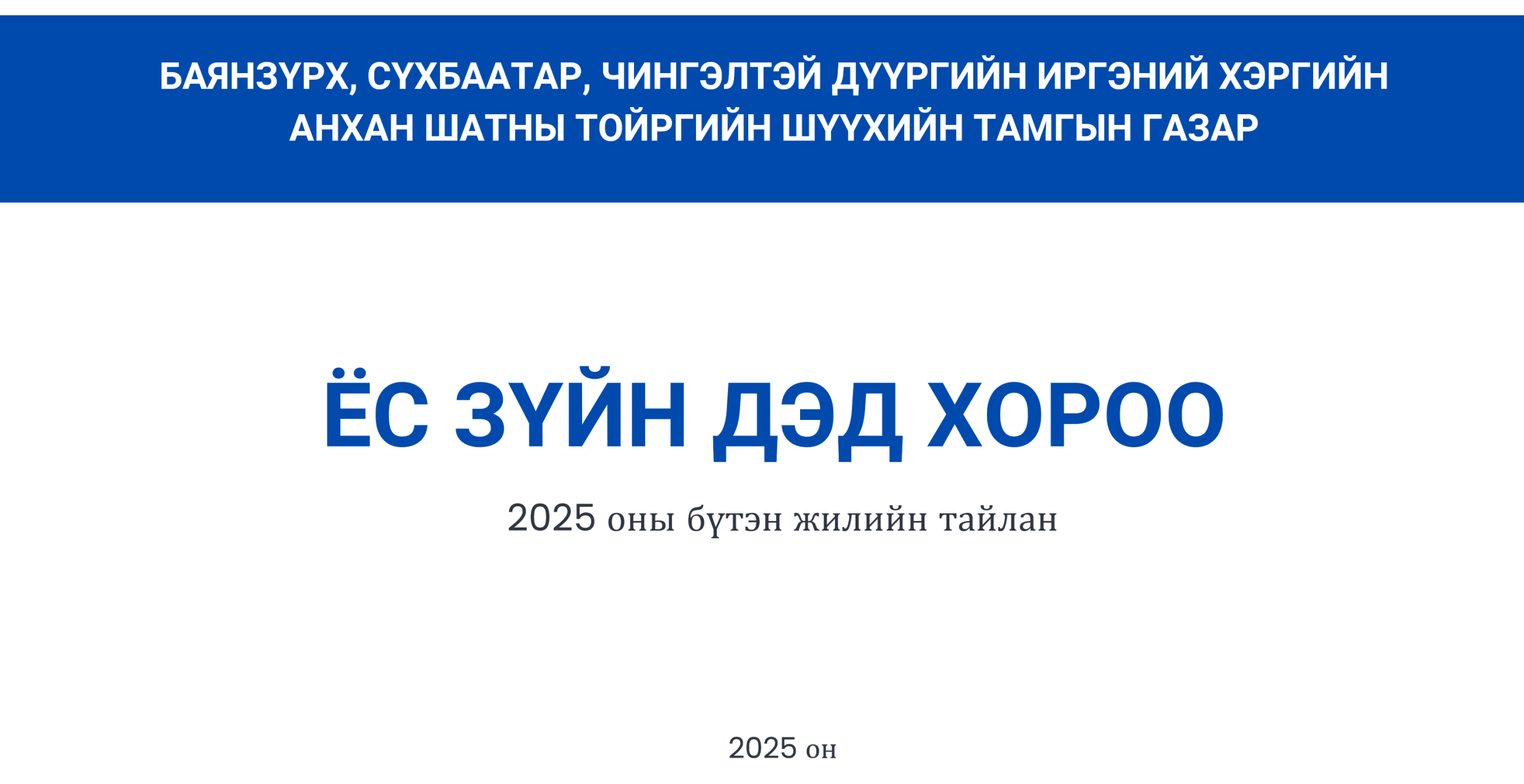 БАЯНЗҮРХ, СҮХБААТАР, ЧИНГЭЛТЭЙ ДҮҮРГИЙН ИРГЭНИЙ ХЭРГИЙН АНХАН ШАТНЫ ТОЙРГИЙН ШҮҮХИЙН