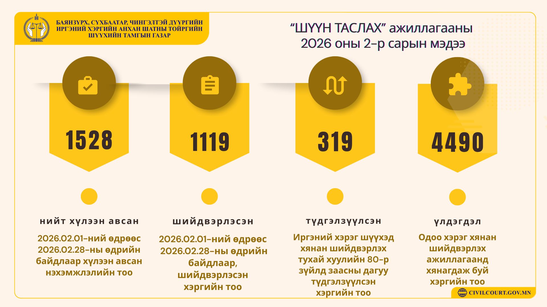 Баянзүрх, Сүхбаатар, Чингэлтэй дүүргийн Иргэний хэргийн анхан шатны тойргийн шүүхийн 2026 оны 01-р сарын мэдээ